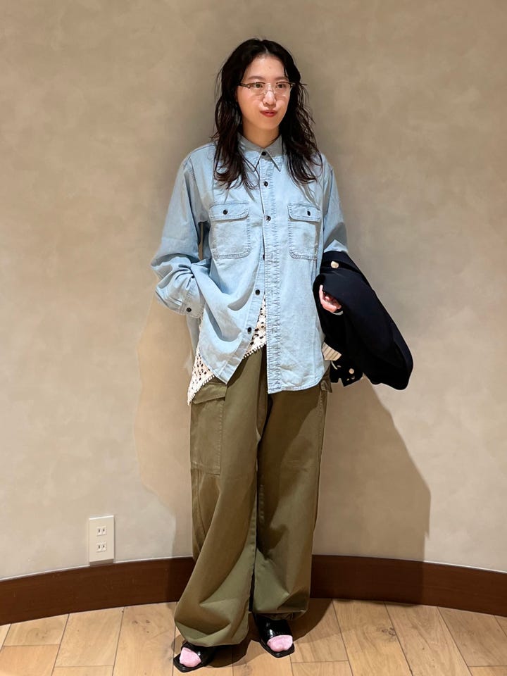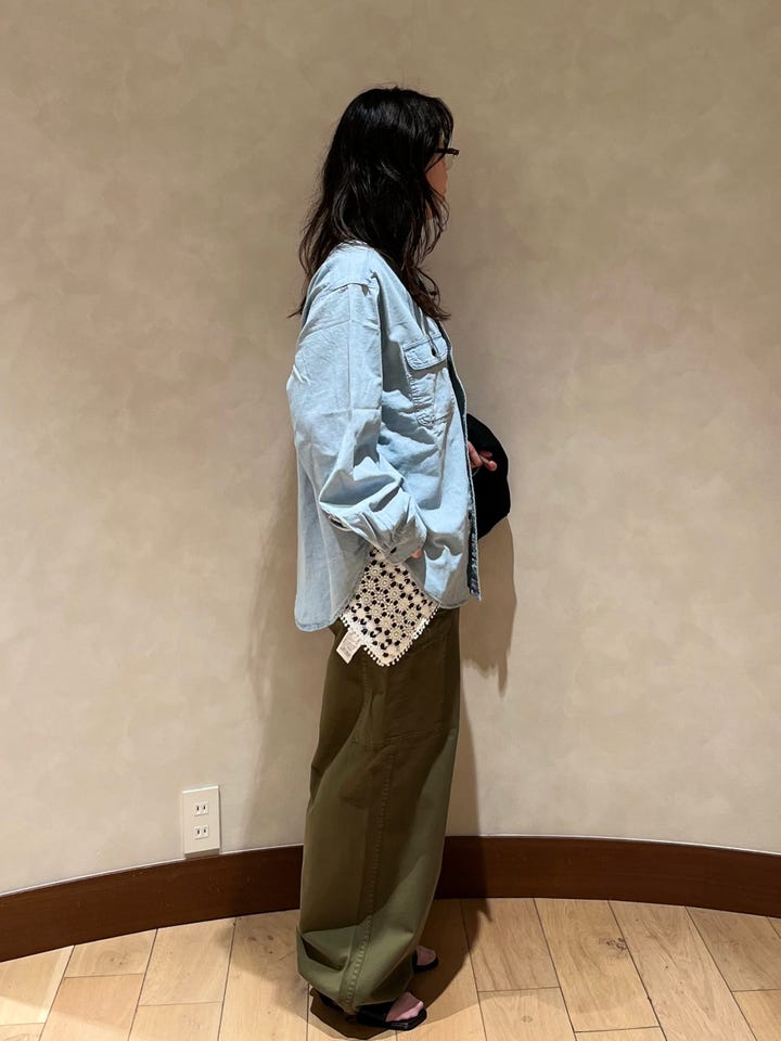 着心地:パラシュートパンツで抜け感をだして履くのが今年らしくてオススメです。ゆったりめで動きやすいです。レーススカーフを肩掛けしてみました。