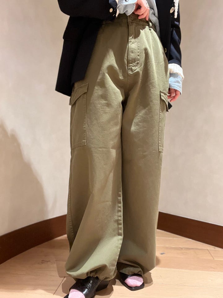 着心地:生地が柔らかく、履きやすいパンツです。Mでかなり大きいですが、裾やウエストを紐で調節できるので、体格気にせず着用できます。スカーフを腰巻きして甘さプラスもオススメです。