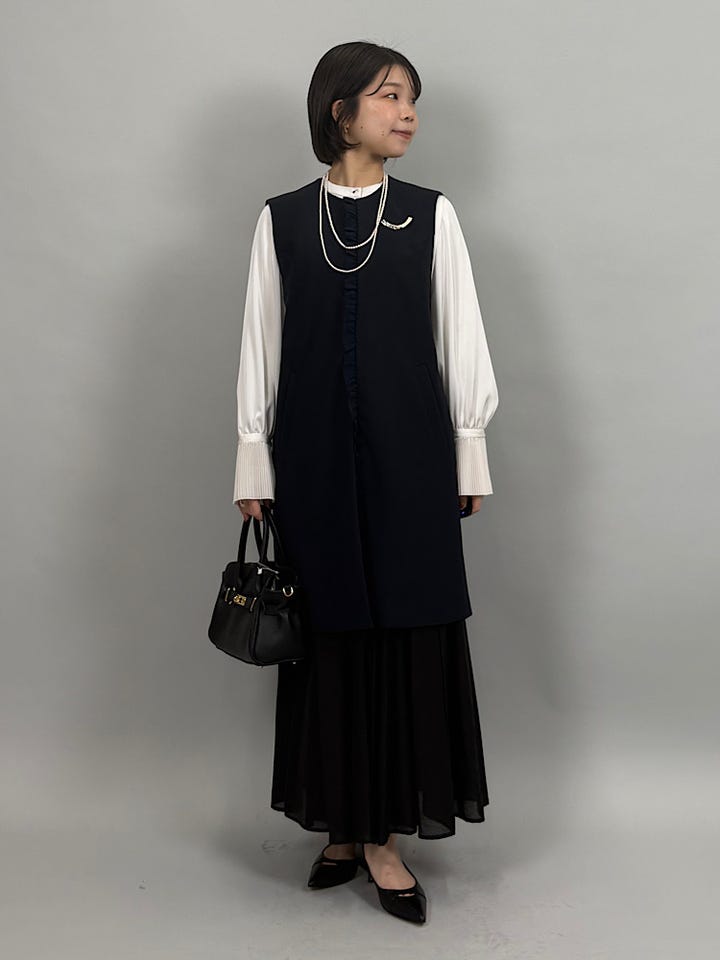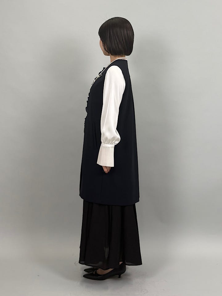 〔ONE SIZE〕【SHIPS別注】kaene:〈洗濯機可能〉ダンボール フリル ロング ジレ(セレモニー対応可)