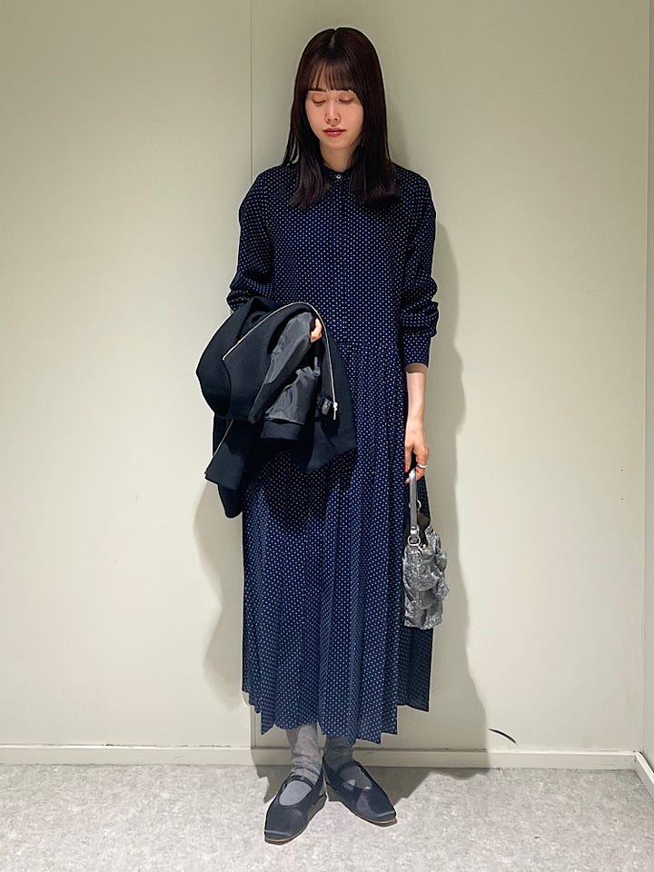 シンプルなドット柄のワンピースが入荷しています。セレモニー控えた方にもおすすめです。薄手で軽い着心地ですが透け感はなくインナー気にせずさらっと着用いただけます。着丈はやや長めで165cmで足首ほどの長さでした!ラインは拾わずシルエットすっきりとした印象です。