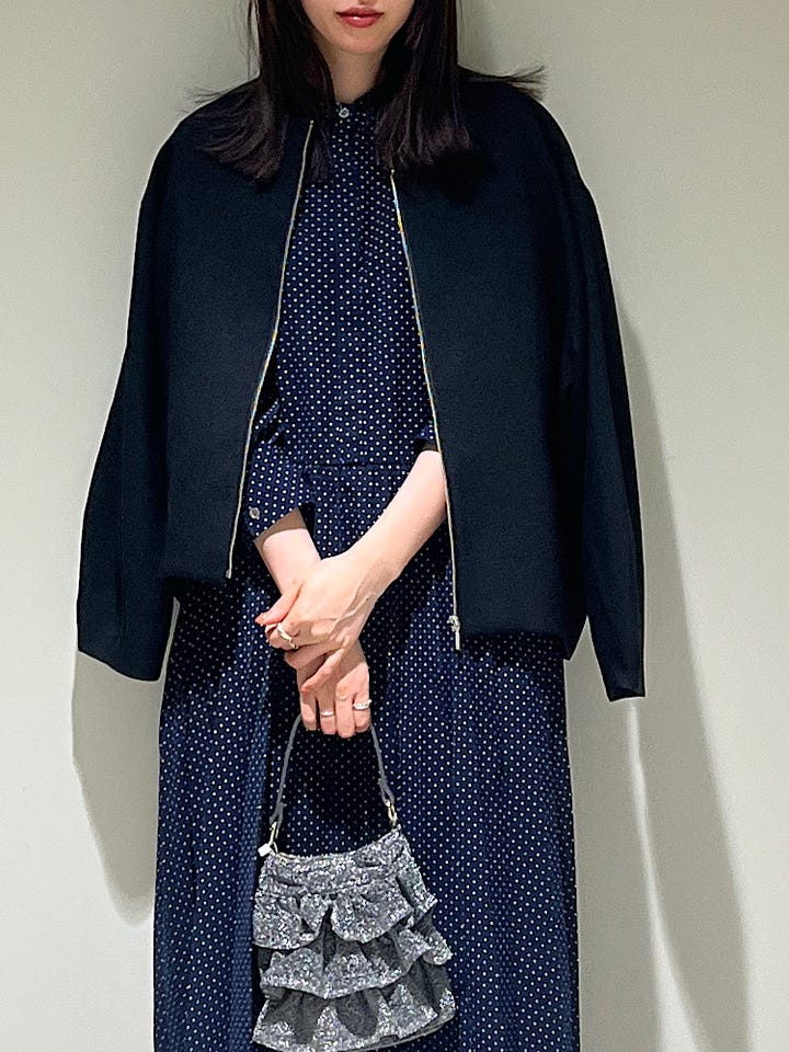 シンプルなノーカラーのブルゾンで綺麗めなコーディネートにもラフなオフスタイルにも合わせて着用いただけます!オンオフ兼用に使えるのでいろんな場面で重宝するアイテムです。ノーカラーですっきりしているので首元にフリルの装飾やフード付きのアイテムなど気にせず羽織れるのでおすすめです!