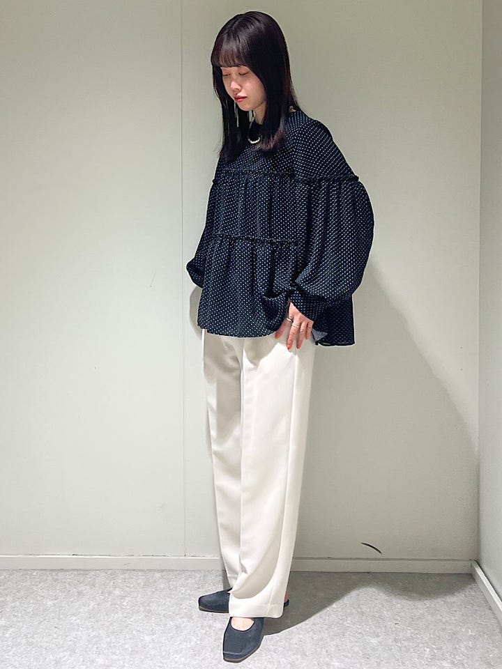 〔ONE SIZE〕SHIPS any:〈洗濯機可能〉ドット ノーカラー ティアード フレア ブラウス