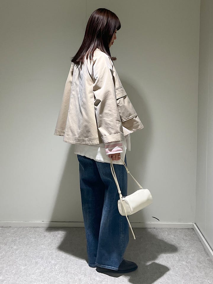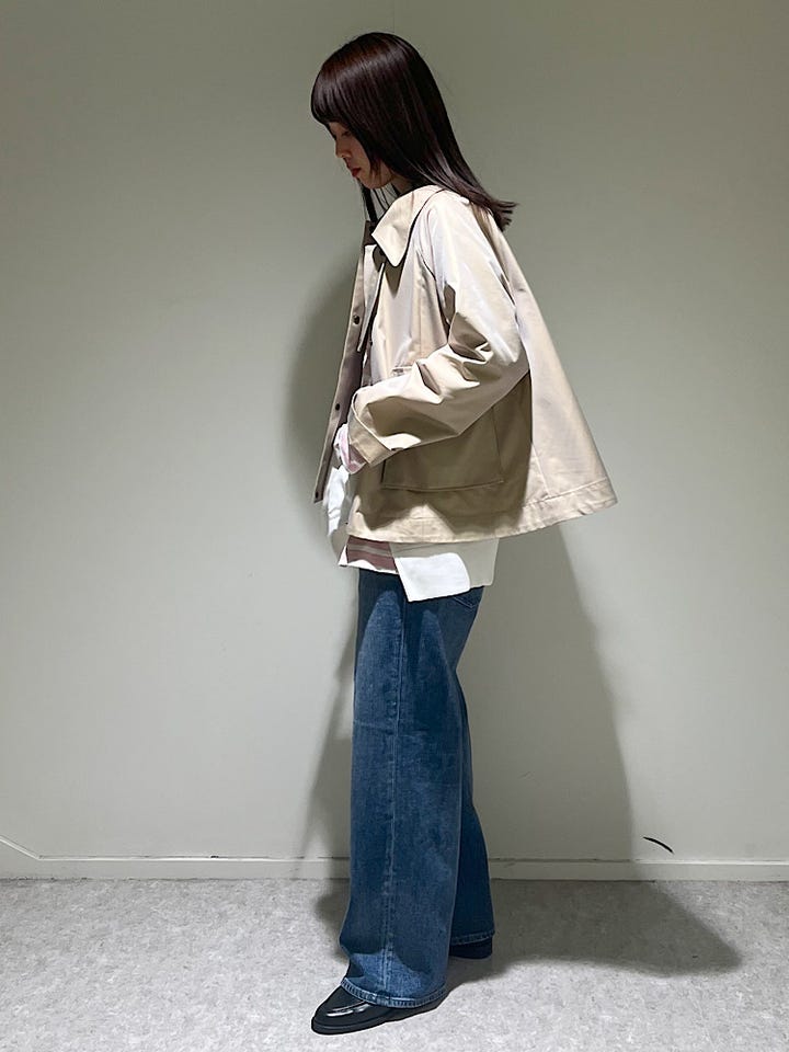 昨年も人気だったトレンチが今年も入荷しています!Aラインのシルエットでゆったりデザインなのでスウェットやニットなど肉厚なインナーの上からも羽織りやすいです。ショート丈なのでいろんなボトムと相性いいです。