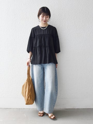 素材感/着心地:ワイドシルエットで何にでも合います。