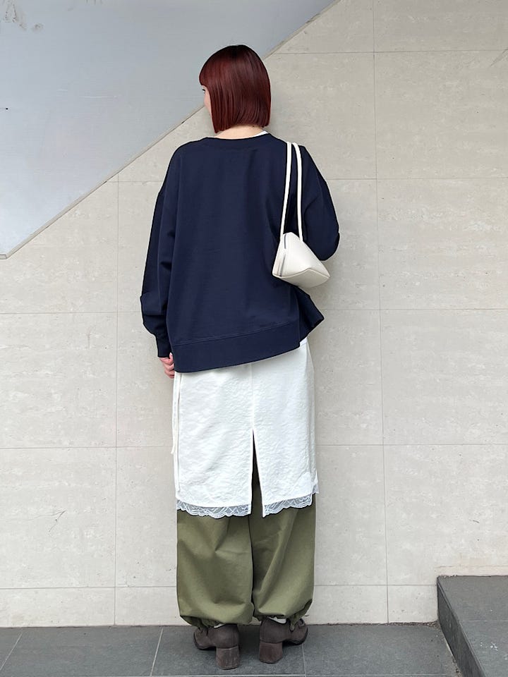 着心地:裾に広がりのあるゆったりシルエットでタイトスカートやワンピースと重ねても可愛くなると思います。薄手で扱いやすく着回しのきくアイテムです。