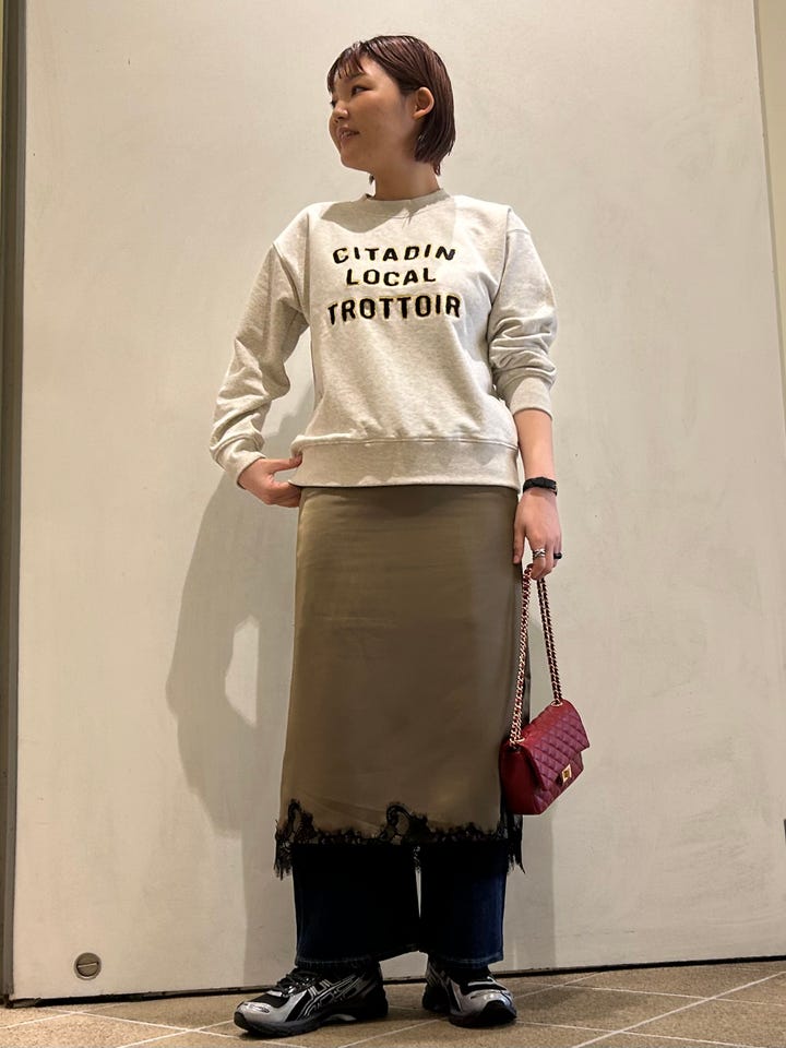 パンツなどとレイヤードしやすくぐるりゴムになっている。裏地も付いていて、一枚でも◎