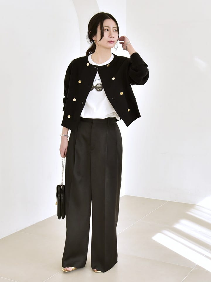 〔ONE SIZE〕《追加予約》quaranciel:〈手洗い可能〉ノーカラー ダブル ボタン ジャケット カーディガン