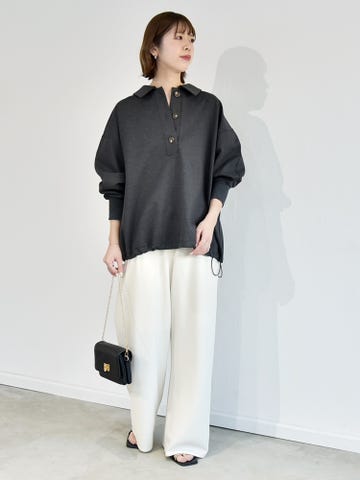 着心地:柔らかいニット生地。ハリ感があるので、シルエットが決まりやすくトップスとしても使いやすいです。