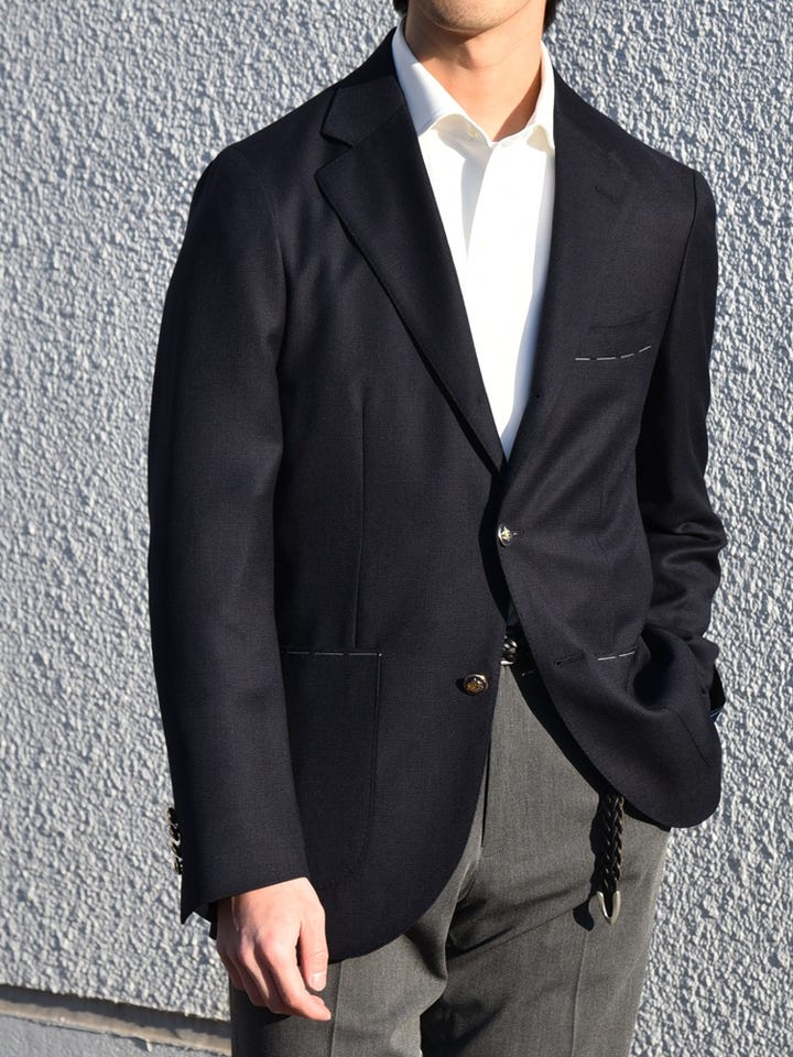 英国マーティンソンのホップサック生地を使用したネイビーブレザー。