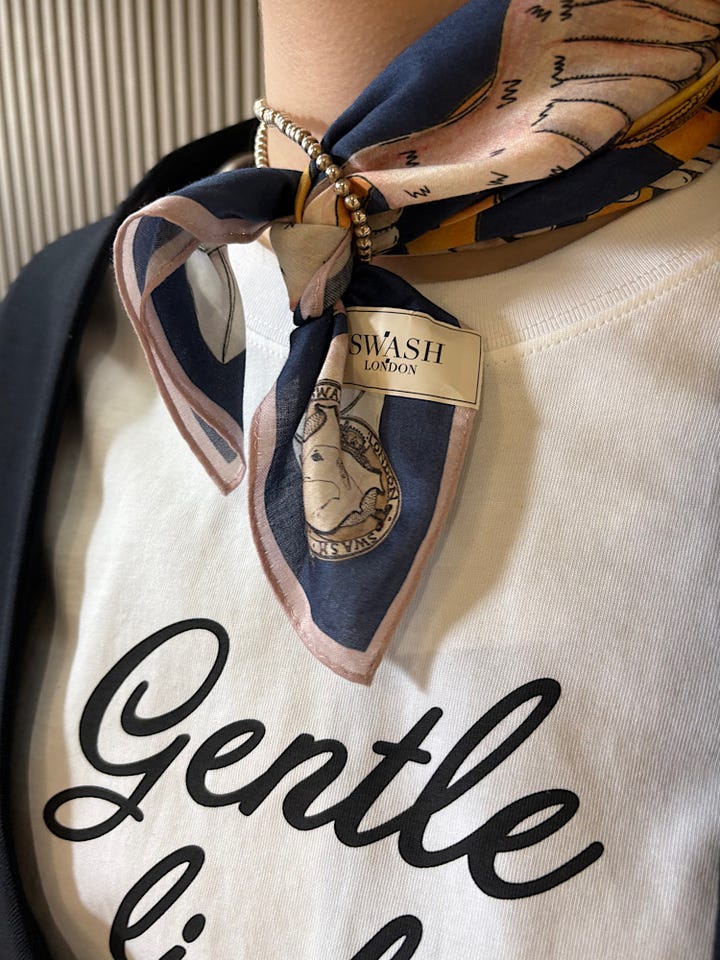 着心地 : 白ボタンがアクセントになり、春夏に万能な一枚。裏地が紫で、腕周りの裏地も柄ありでまくってもおしゃれ。