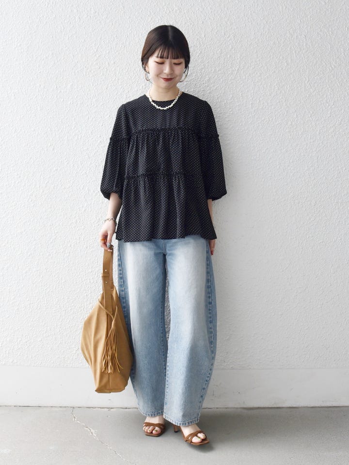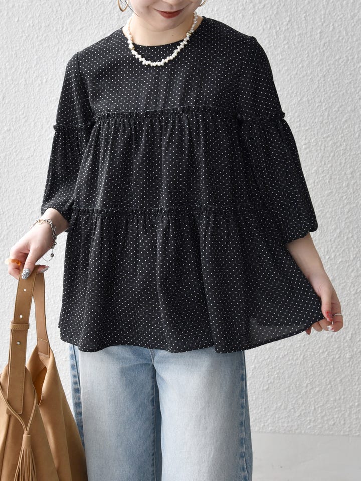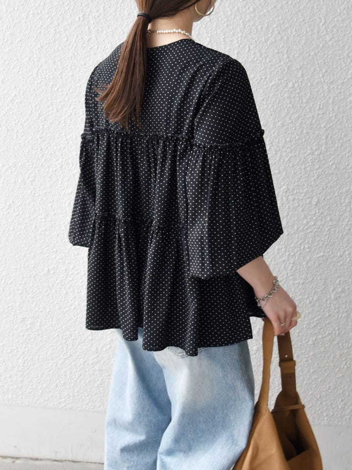 着用アイテム:SHIPS any:〈洗濯機可能〉ドット ノーカラー ティアード フレア ブラウス