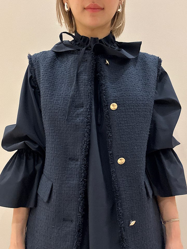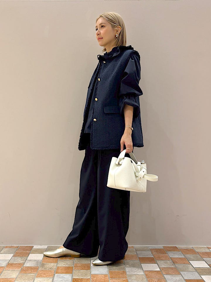 【素材感・着心地】首周りのフリルは甘すぎず綺麗で大人かわいい。