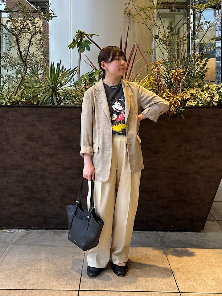 着心地 : さらっとした生地感で着心地が良いです。程よくゆとりがありつつもシルエットが綺麗に見えるので、キレイめにもカジュアルにも着用できます。