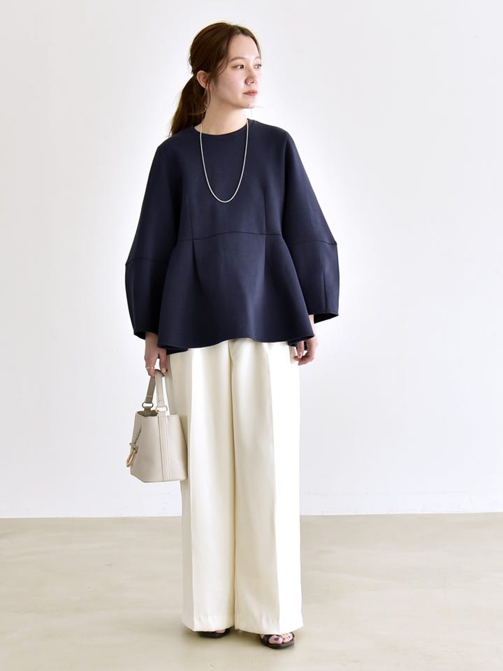 着心地:滑らかな肌触りで、ハリ感のある生地。ふんわりと広がるペプラムシルエットが可愛いです。