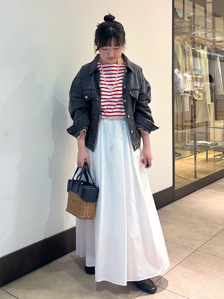 着心地:肌離れが良く、軽くて履きやすいスカートです。撥水加工入りで汚れにくいため、ホワイトも挑戦しやすいです。