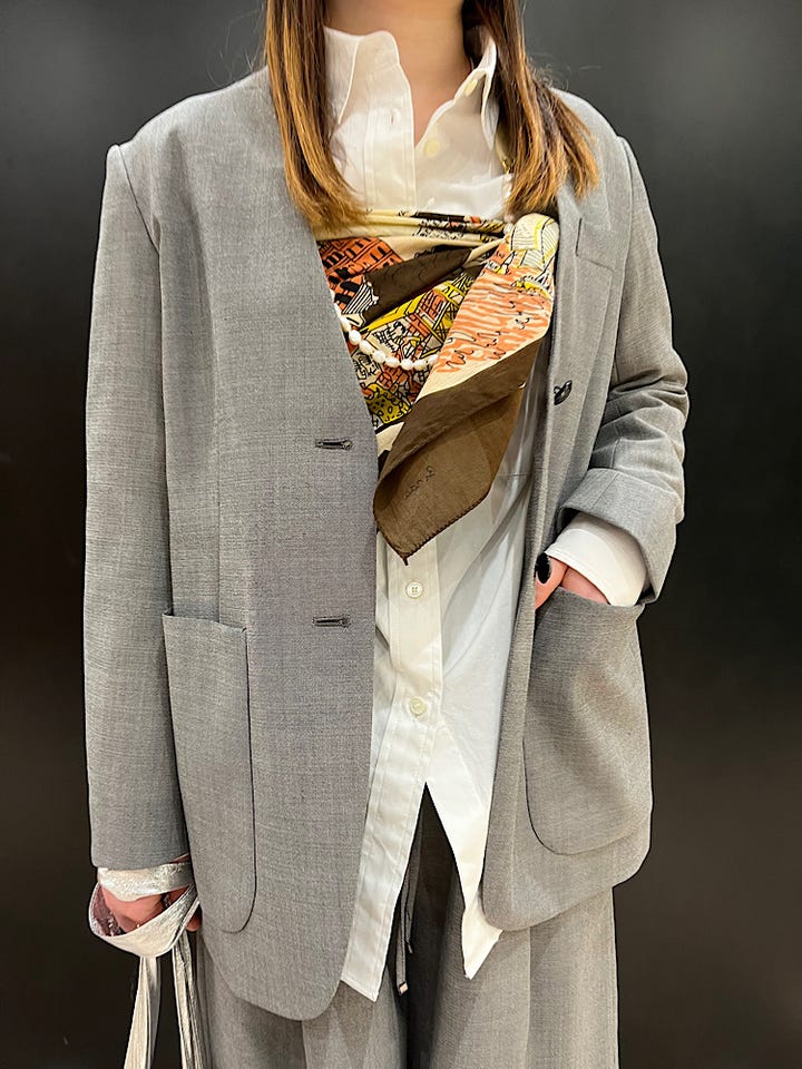 ノーカラーでかっちりしすぎず綺麗めに着られます◎