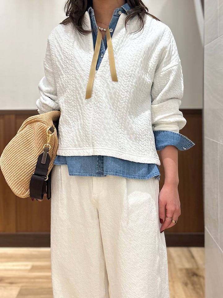 着心地:首元はチャックになっているので、Vネックのスキッパープルオーバーとしても使えます。