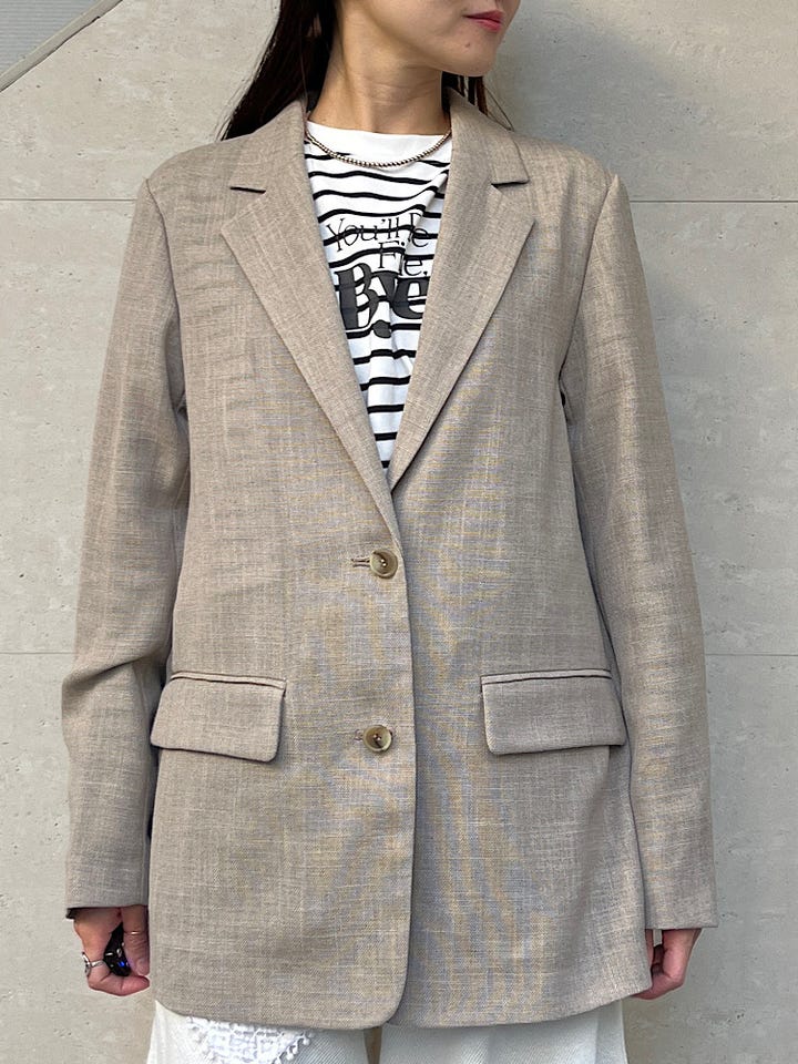 麻見えするポリエステル素材なのでお手入れもしやすく、シワも気にならないです。形もスッキリしたシルエットでON/OFFどちらでも使いやすいです。