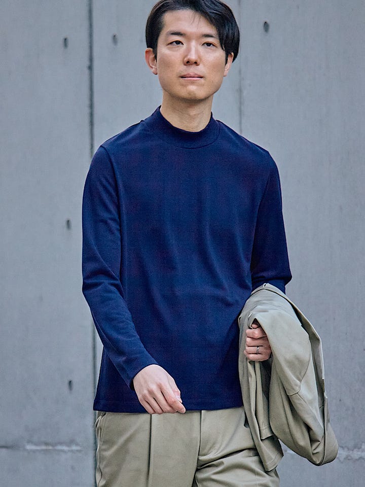 〔MEDIUM〕【WEB限定】SHIPS: 防シワ・吸水速乾 Drymix(R) モックネック ロングスリーブ Tシャツ
