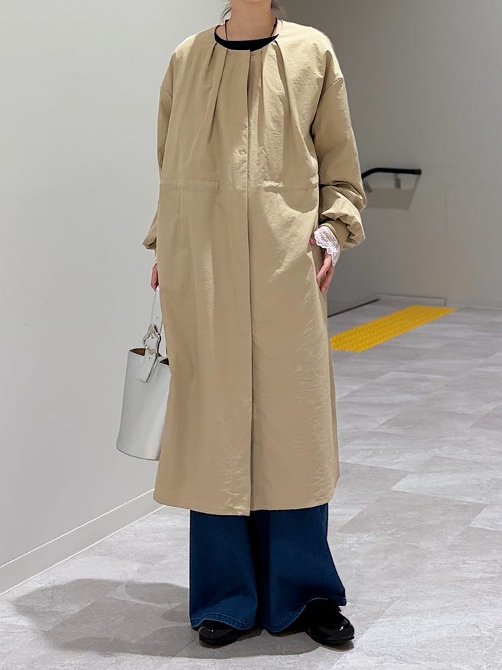 〔ONE SIZE〕SHIPS Colors:〈手洗い可能〉ツイル ノーカラー タック コート◇