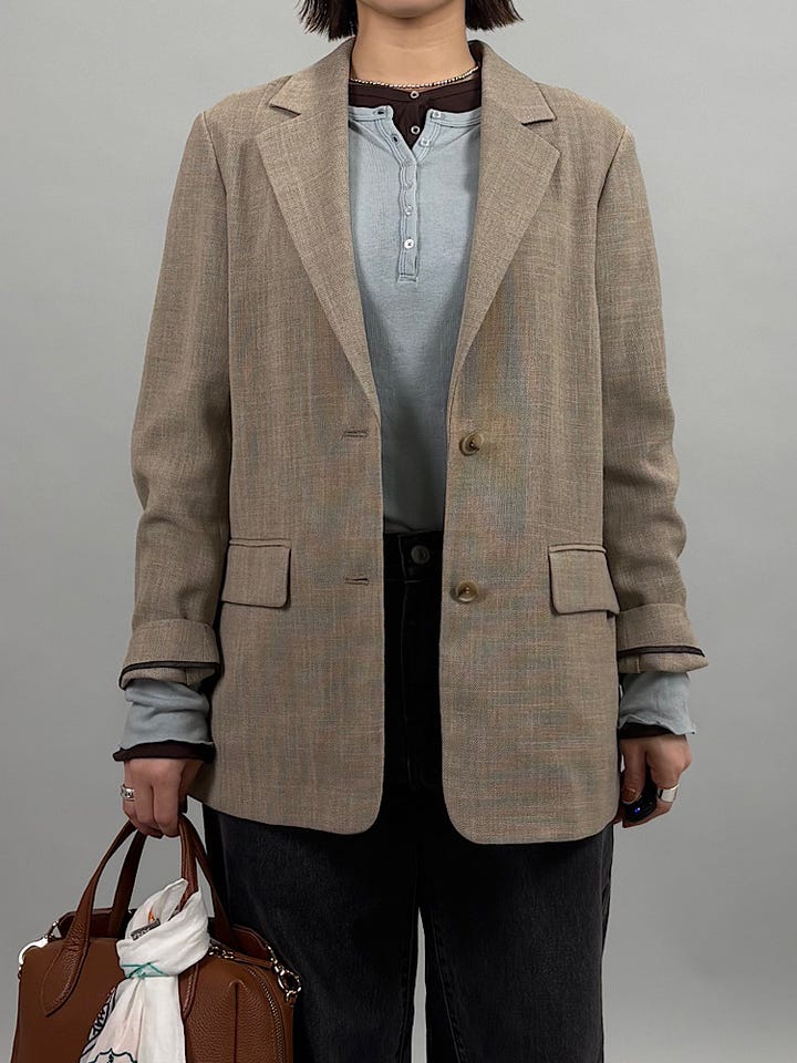 肌触りが良くやわらかいコットン素材。とても着心地がいいです。ボタンが小さいので、インナーにも使いやすいです◎ブルーとブラウンを色違いで重ねて着てみました。