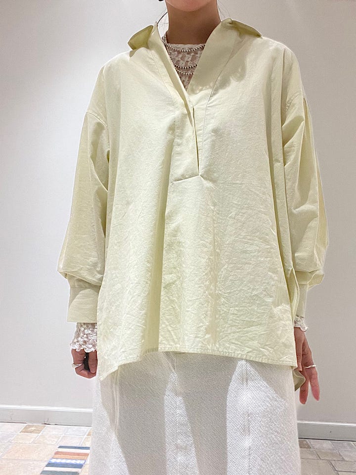着心地:スキッパーデザインでざっくりしたシルエットなのでとても楽です。