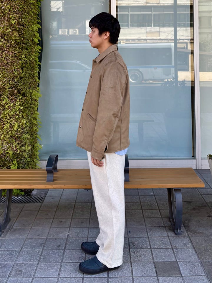 特徴:フェイクスエードで軽いため着やすいです。この春オススメアウターです。