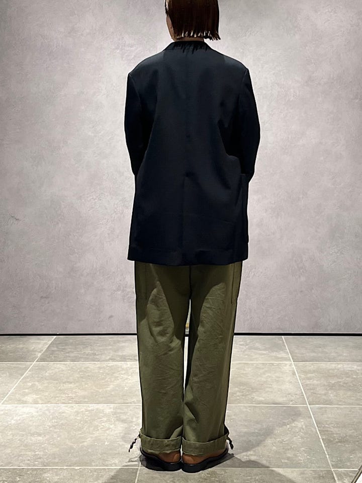 素材感/着心地:丈はちょうど良いですが、ジャケットが大きめなのでスッキリ見せるためにロールアップしています。生地が柔らかいのでストレスなく着用できます。