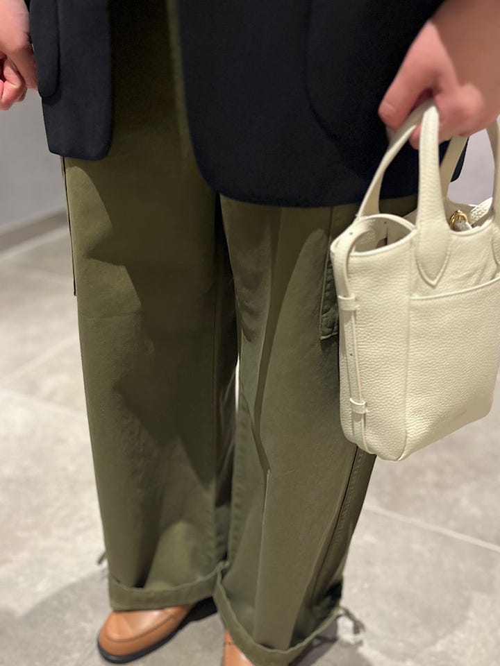 素材感/着心地:38だとやや大きめですが、オーバーサイズなので抜け感を出すことができます。