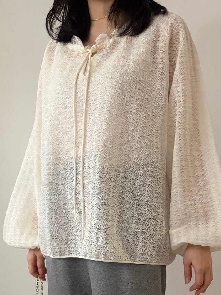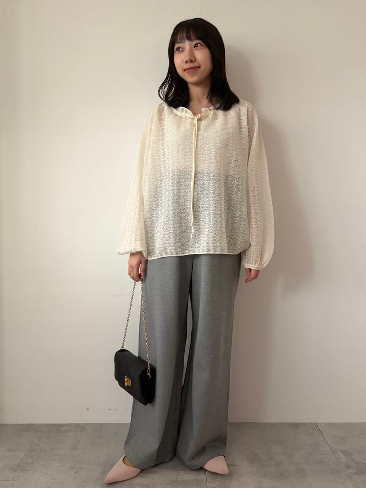 〔ONE SIZE〕《予約》quaranciel:〈手洗い可能〉レース ジャカード ギャザー リボン プルオーバー