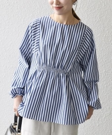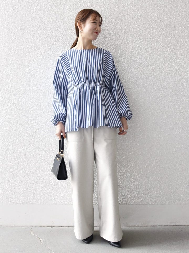 着用アイテム:REPREVE ギャザー パフシャツ ブラウス ネイビー