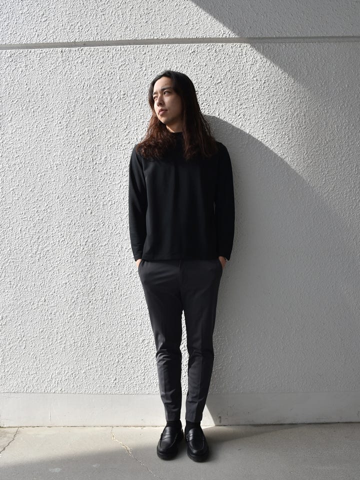 着用アイテム:112-00-0261 【WEB限定】SHIPS: 防シワ・吸水速乾 Drymix(R) モックネック ロングスリーブ Tシャツ