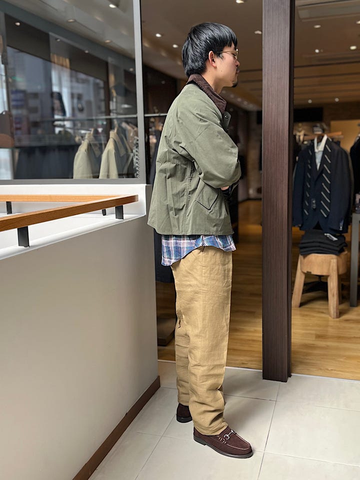 コテコテのアメカジ。色味が重いので素材を軽くしました。