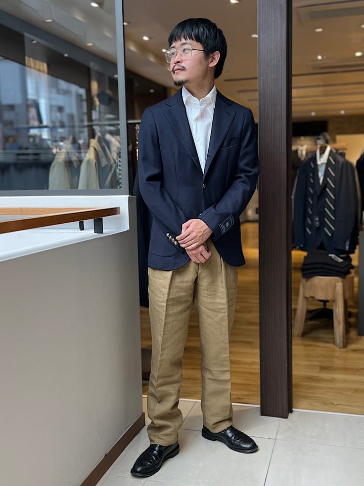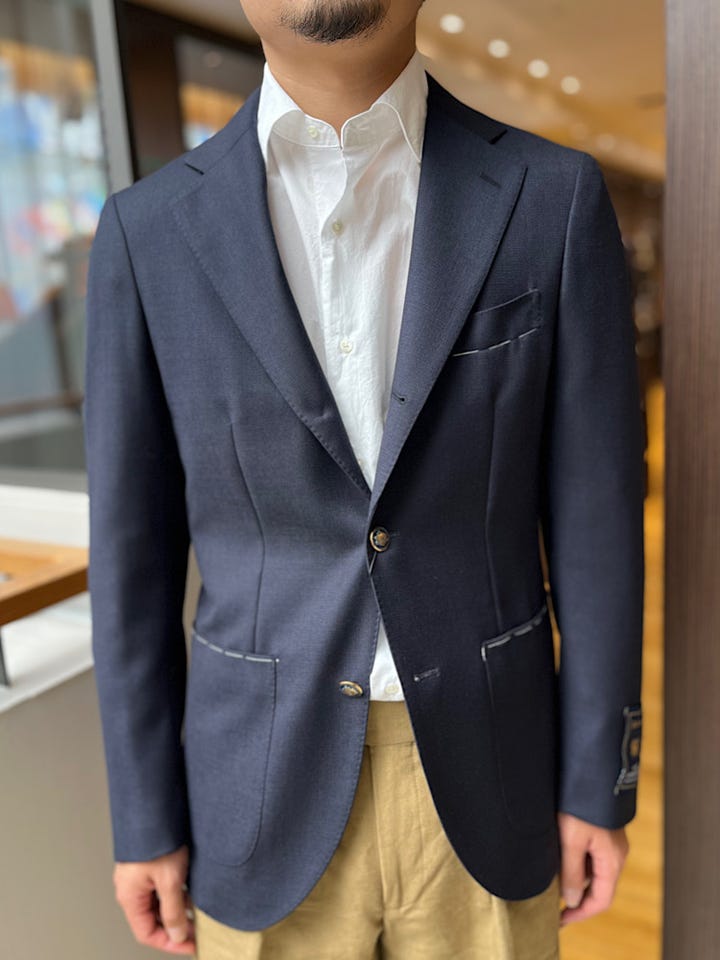 春先でも着れる紺ブレです。