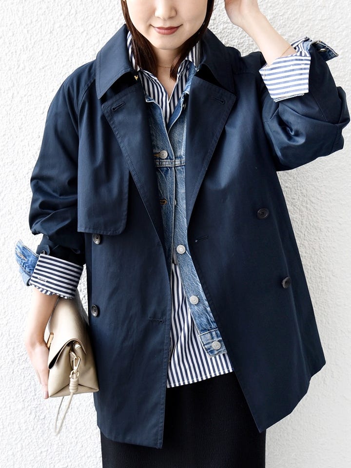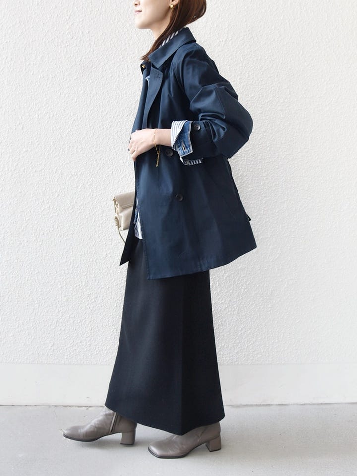 ■素材感:ややハリ感のある素材です。撥水加工が施されているので天候の心配もなく着用できます。