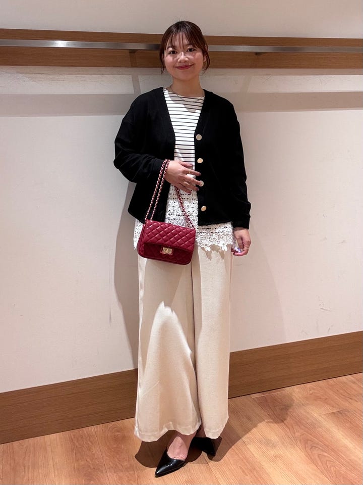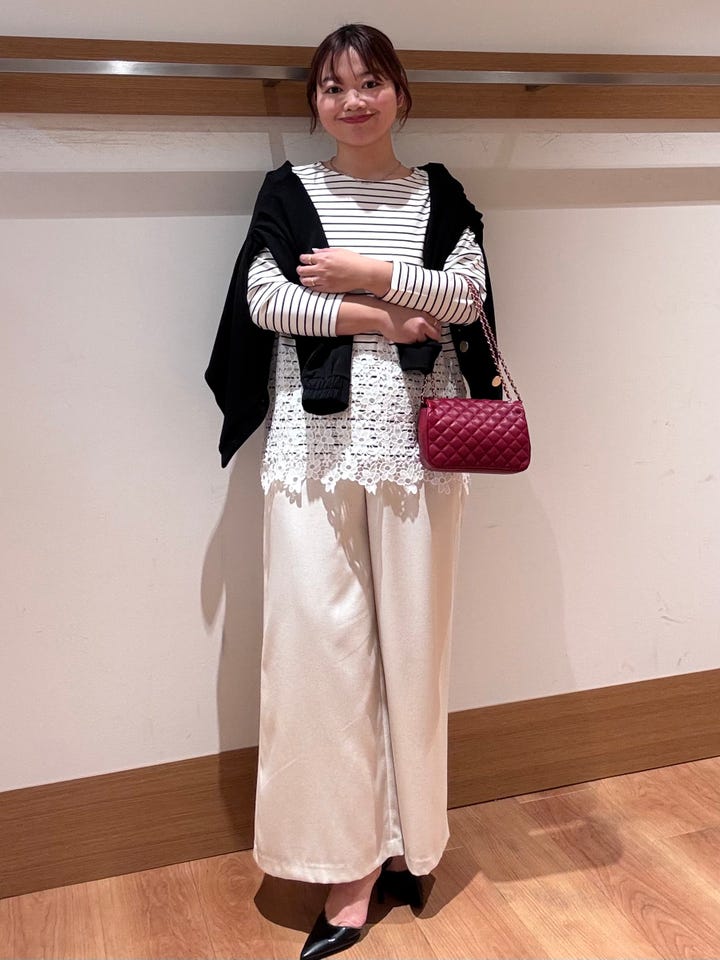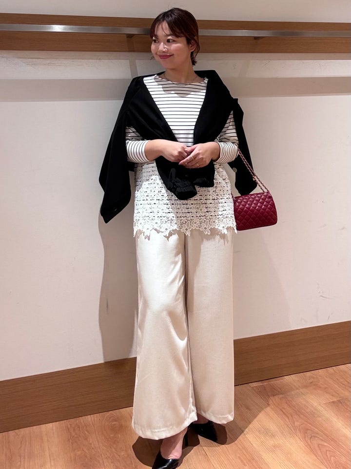 横幅がしっかりあるワイドパンツなので脚のラインを拾いにくいです!