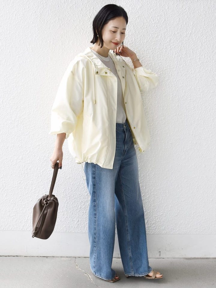 着心地:柔らかいデニムなので、動きやすいです。ヒールやボリュームスニーカーと合わせるとバランスが良さそう◎