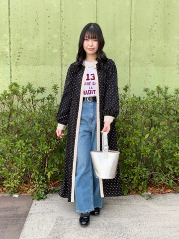 ワイドなシルエットですが、綺麗な素材感で、綺麗めコーデにもってこいです!