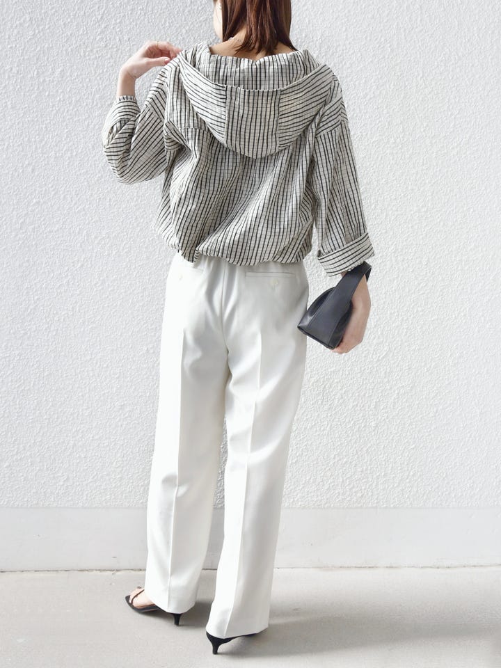 〔ONE SIZE〕《予約》【WEB限定】〈手洗い可能〉ストライプ フード 羽織り シャツ