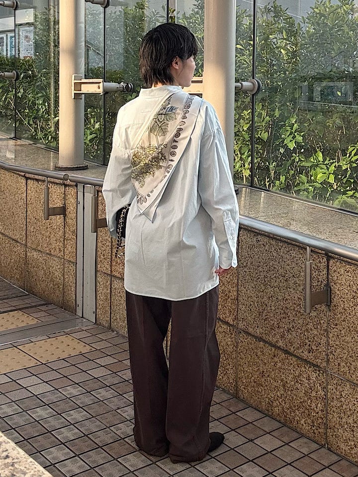 着丈少し長めで縦長な形のシャツなので