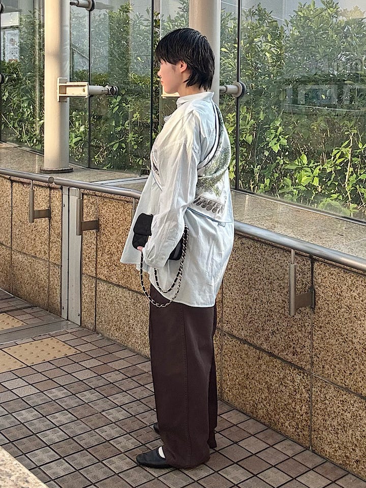 裾もダボっともたつくように着てみました。