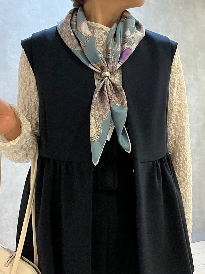 着用感 : 裏地付きで綺麗めにはとてもコーディネイトしやすいデザインです。背が高くなくても切り替えがあるので見た目もバランスがとても良いです。アームホールもゆったりしているのでインナーのゆったりしたブラウスなどの合わせをしても楽です。