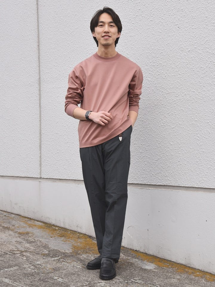 サイズ感:腰回りにはゆとりがあるが、自然なテーパードでルーズすぎない。