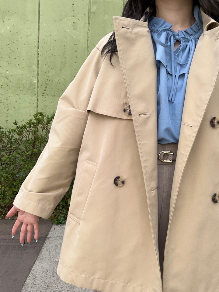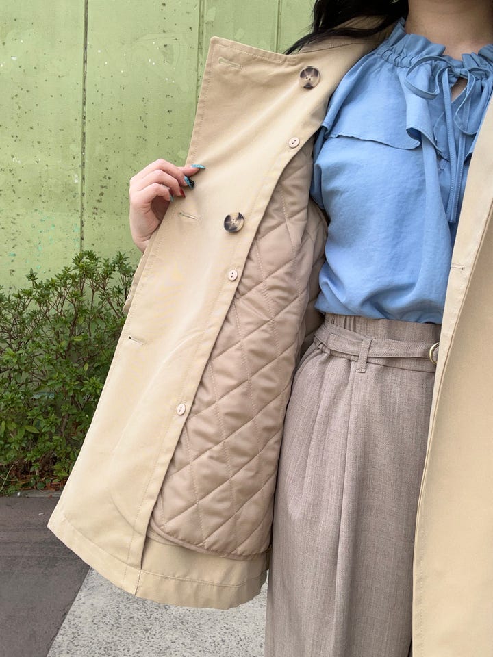 仕事でもプライベートでも使えるハーフトレンチアウターです。中に取り外し可能なキルティングの中綿があるので季節に合わせて着用できます。