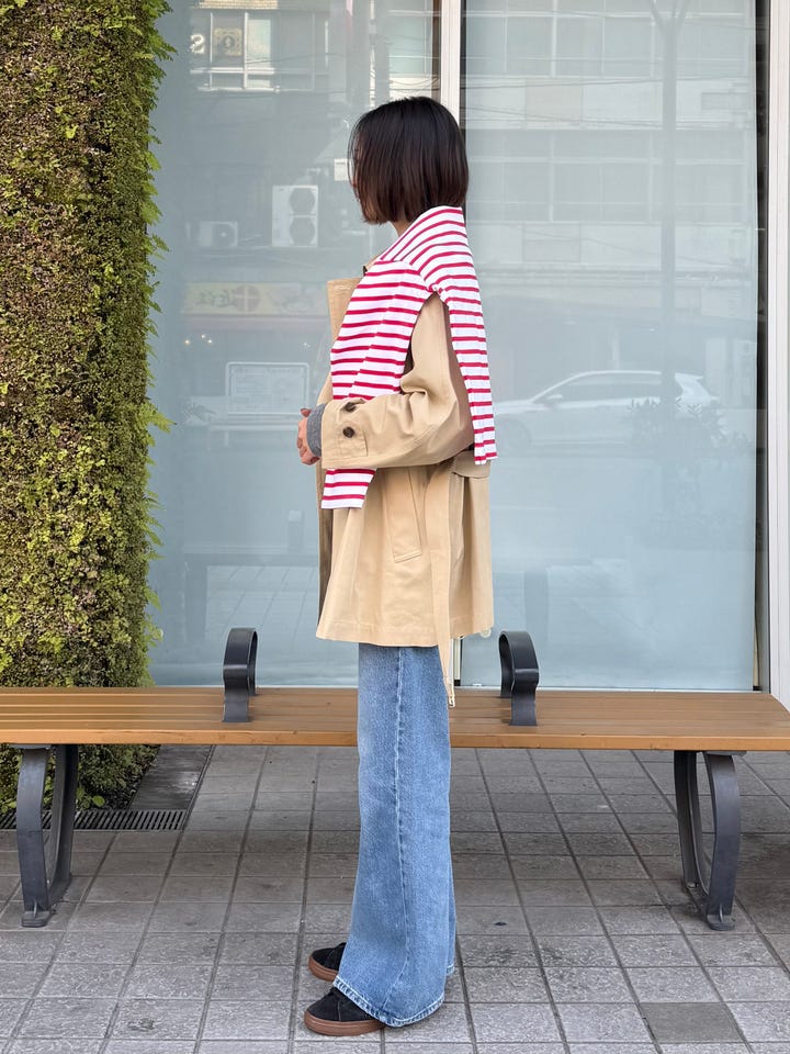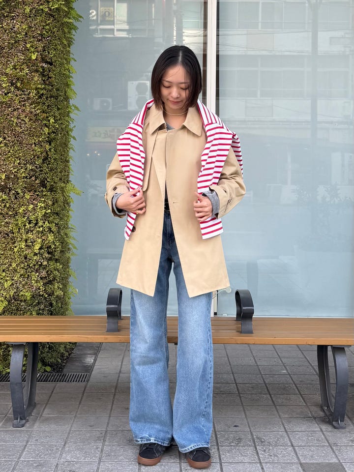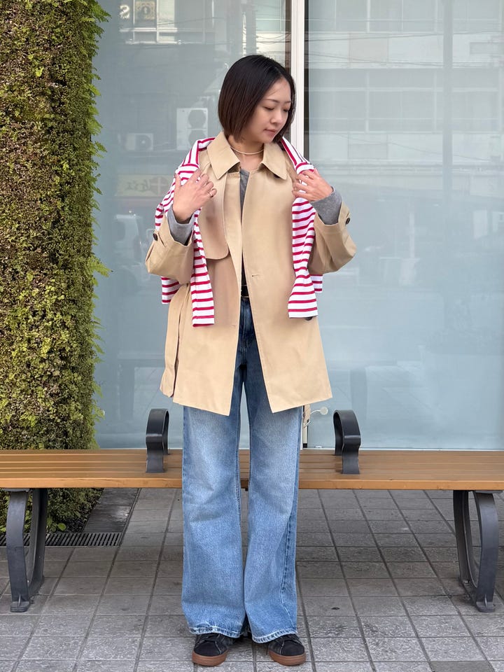 サイズ感・着心地:ゆとりあり。ミドル丈のトレンチが今っぽくて可愛い!36でも十分ゆとりありますが、ゆるっと畏まらずに着たかったので38を着用しています。