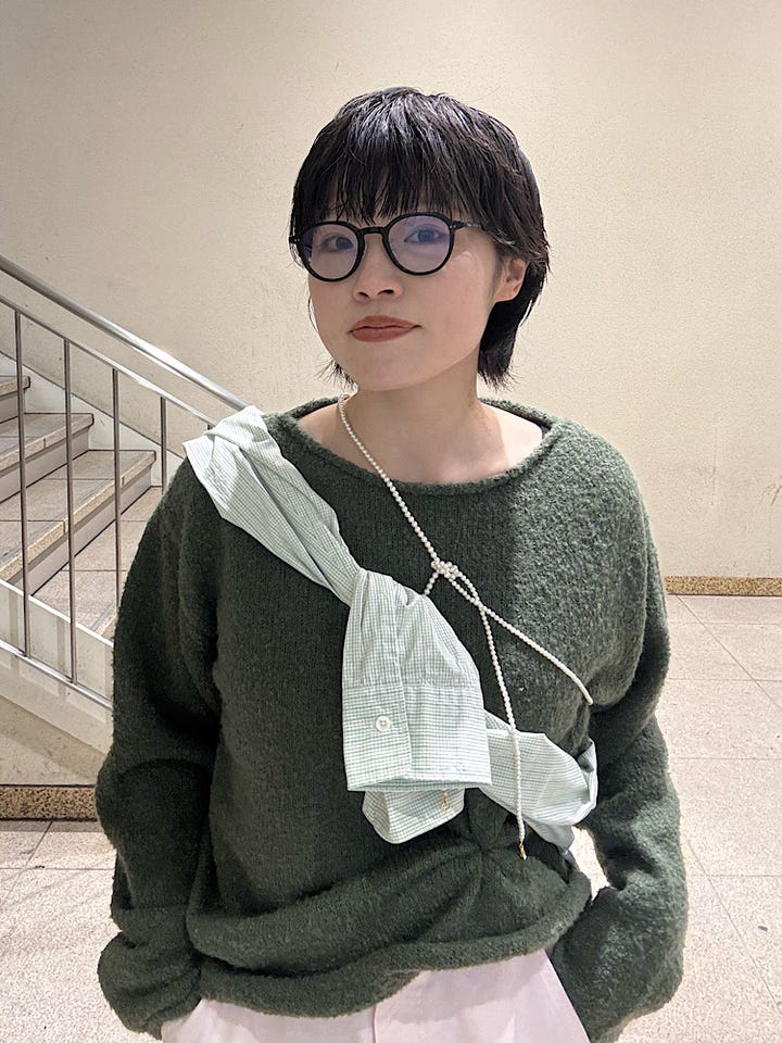 今の時期や春先はニットやスウェット、Gジャンと、