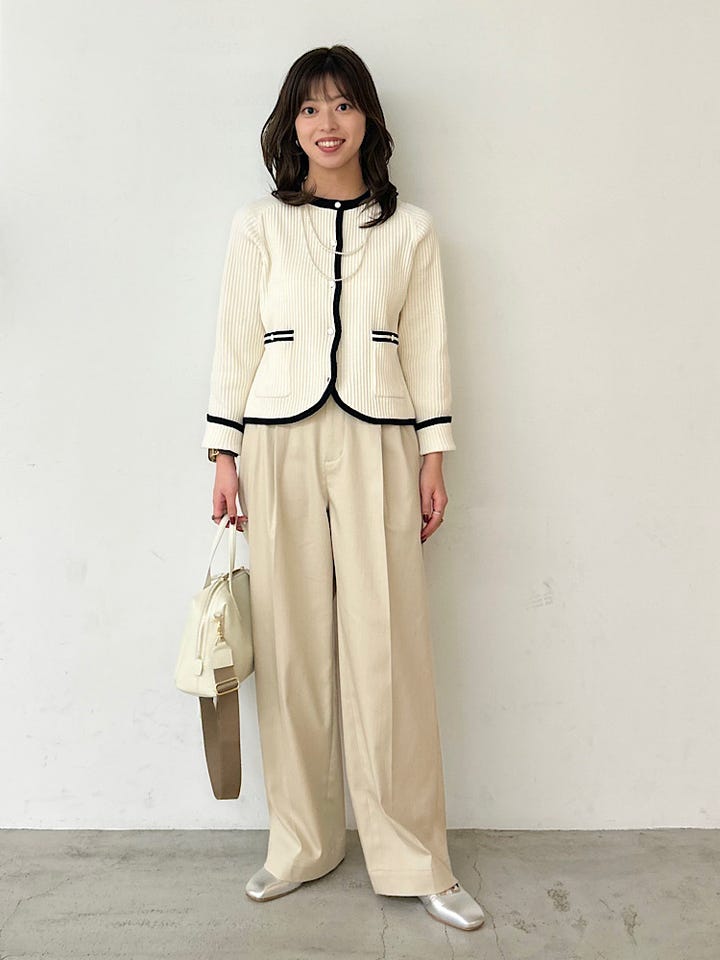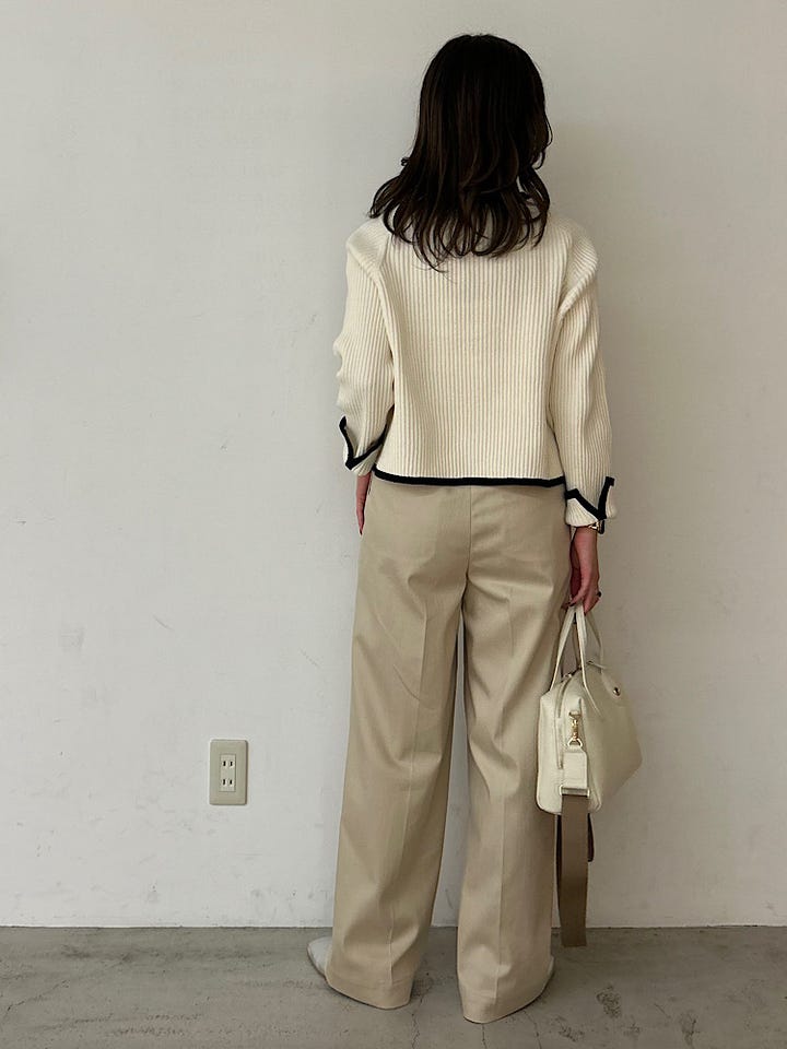 着心地: 腰位置が高く見えるデザインと2タック仕様で、お腹周りをカバーしながらスタイルアップが叶うワイドパンツです。