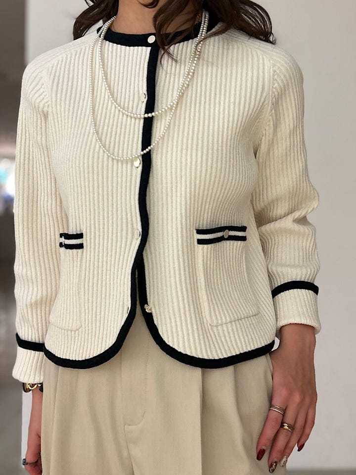 〔ONE SIZE〕〈手洗い可能〉綿混 ウェーブ モール リブ 配色 カーディガン