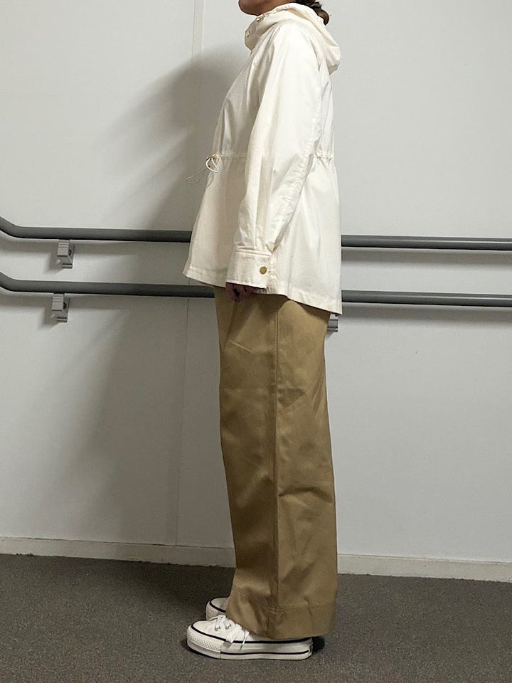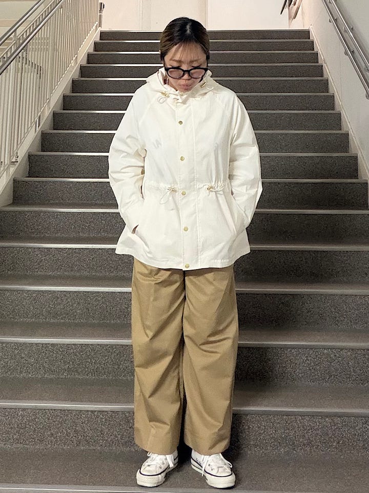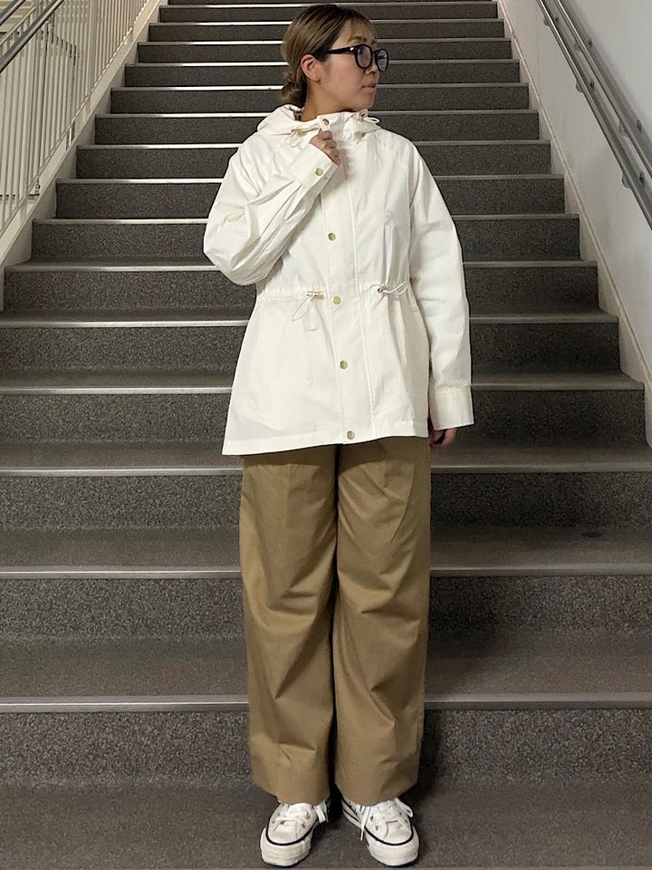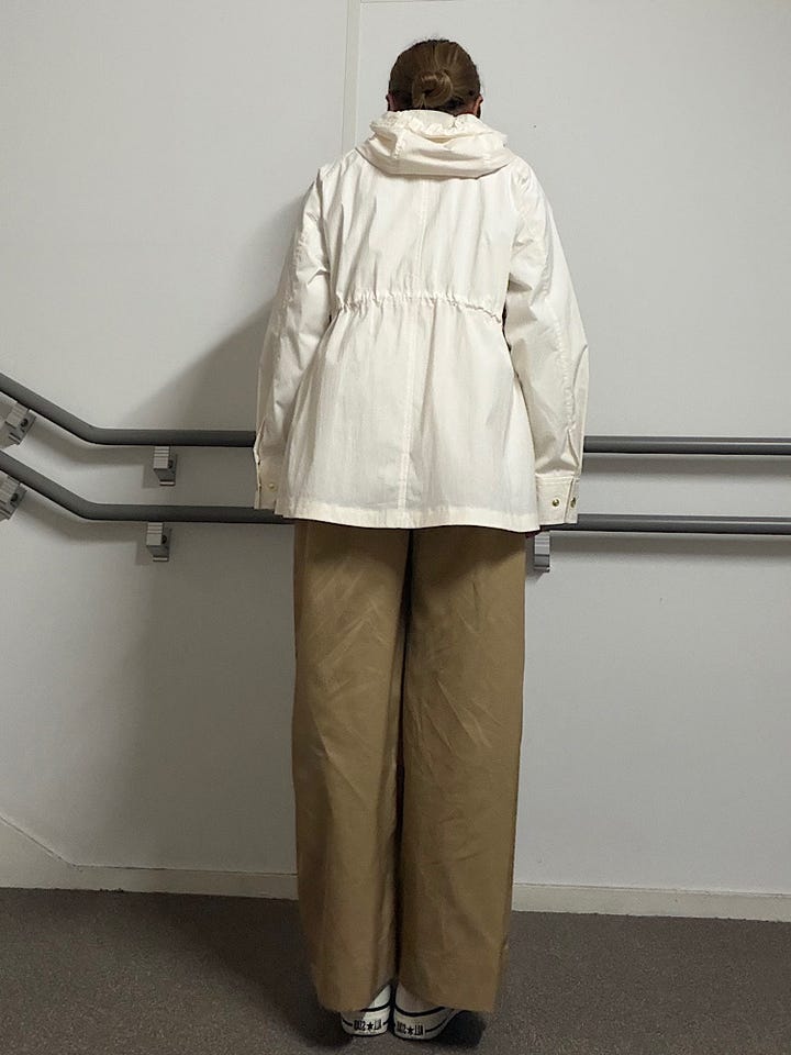 【素材感・着心地】やや張り感のある素材で裏地のないデザインになります!ゆったりとしたサイズ感と、軽やかな着心地で春のアウターとして活躍間違い無し♪ウエストのドローコードでシルエット調整も可能◎