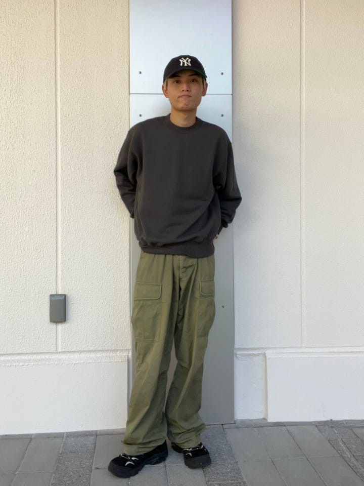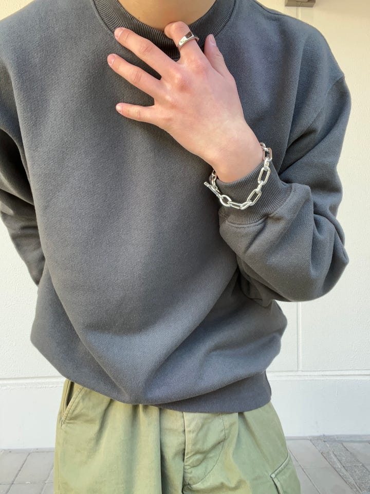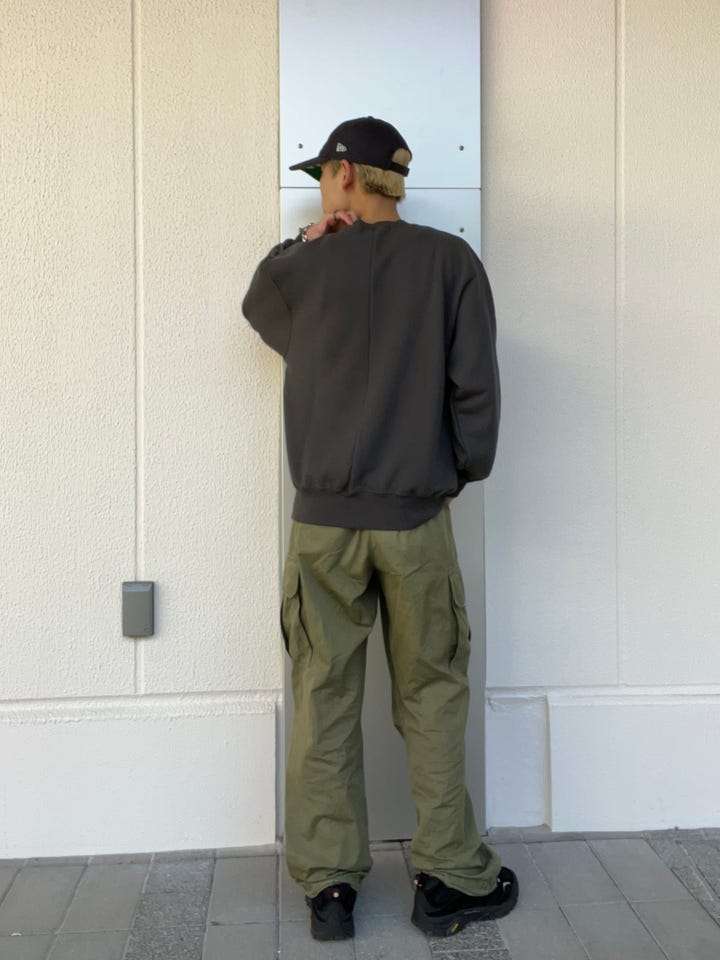 生地が凄くしっかりしているトレーナーで、リブもかかっているので、短丈でも着用していただけますし、普段のシルエットでも着用していただけます。